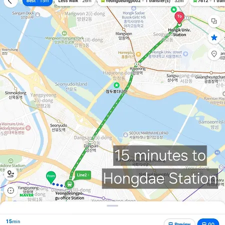Yeongdeungpo-Gu Office Station Line 2 And Line 5 5 Minutes Away Two-Bedroom apartment also features an equipped kitchen with facilities. Offering access to the rest of Seoul, Yeongdeungpo-gu Office underground station is approximately 10 minutes' walk away.